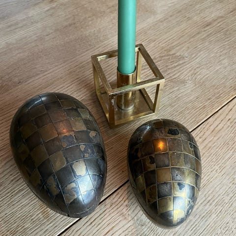 Lille metalæg, Vintage, Dekorativt æg med smuk patina.