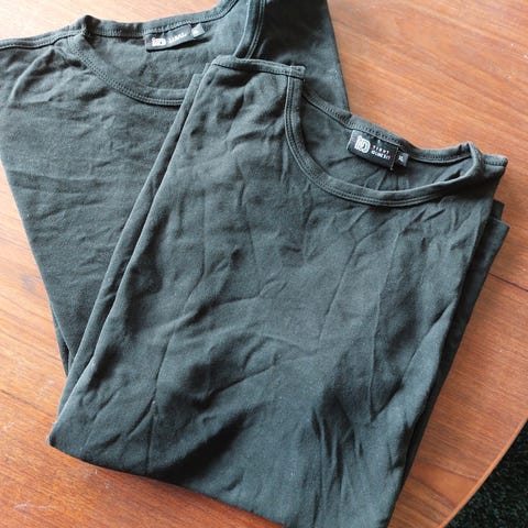 Henleys, hvid med print, nypris 299 kr, er lidt fnulleret i stoffet men stadig god og brugbar