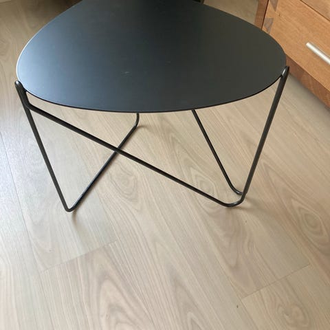Sidebord, PL patent, Fint lille stabilt bord med "sølv"grå bordplade og stålben. 39,5 cm x 39,5 cm højde 44 cm.