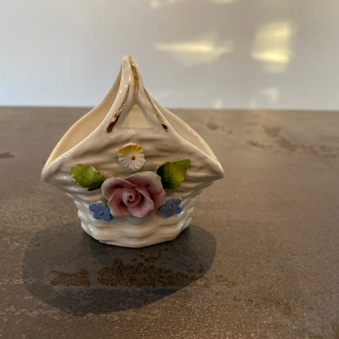 Porcelæn, Porcelænskurve, 2 meget fine romantiske porcelænskurve med hanke. Dekoreret med roser og guldkanter - fremstår som nye. Den ene måler 7.5 cm i højden og diameter 8 cm. Den anden er 6 cm i højden og 11 cm i diameter. Sendes gerne, send info.