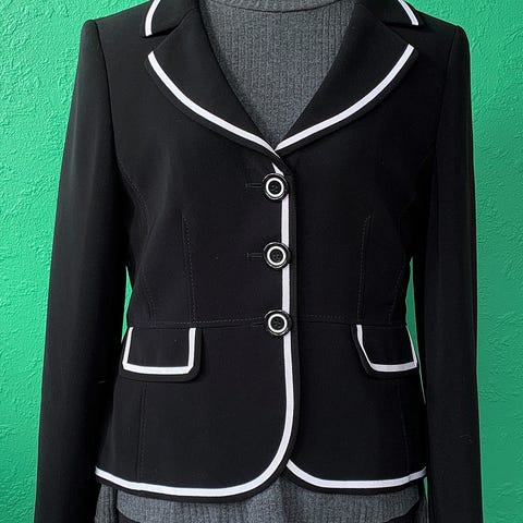 Lækker med snit som bare sidder flot på, som mærket Gerry Weber er kendt for :) Farve marineblå med hvide stikninger. Lukkes med knapper. 3/4 lange ærmer.