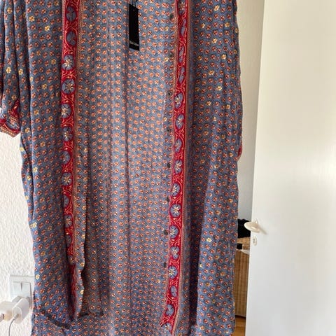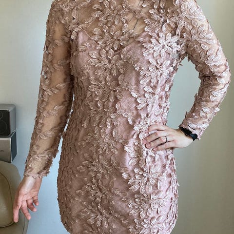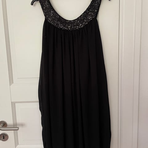 Utrolig flot tunika / festkjole med gennemsigtig tyl stof yderst. Er foret. Brugt ganske få gange og er meget velholdt. Ingen huller eller pletter.