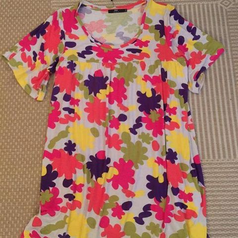 Der står str. 48 i : Brystvidde ca. 2 x 61 cm. Længde fra skulder og ned ca. 79 cm. Indvendig ærmelængde ca. 55 cm.