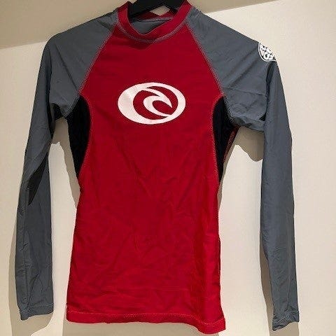 Badetøj, Sol T-shirt, QuickSilver, str. 146, Der står str. 14 i nakken, men vil mene den kan passes fra str. 10. Giver sig så flere str. kan bruge den.
