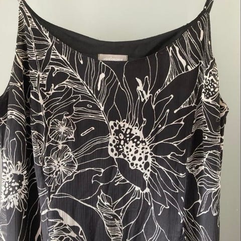 Har flotte læg nederst på skørtet som den har mere vidde. Ærmer er gennemsigtige.