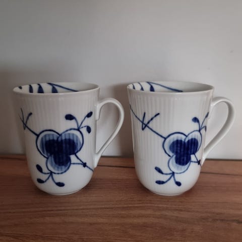 Porcelæn, Blå mega riflet krus, Royal Copenhagen, Blå mega riflet krus, 2 stk., 1. sortering og som nye. Kan hentes i Århus eller Horsens