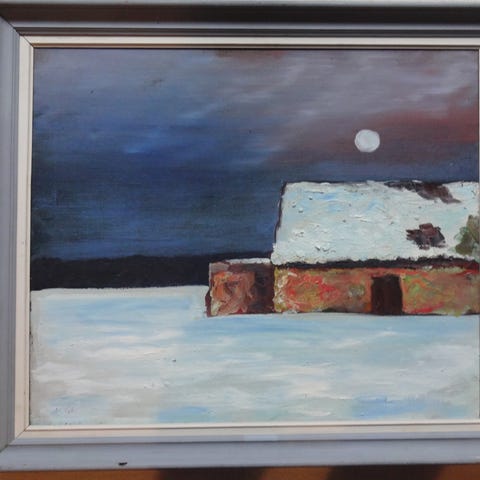 Oliemaleri, Emil A Schou, motiv: Landskab, stil: Modernisme, b: 59 h: 46, Oliemaleri af Emil Andersen Schou ( 1896 - 1986 ) maler