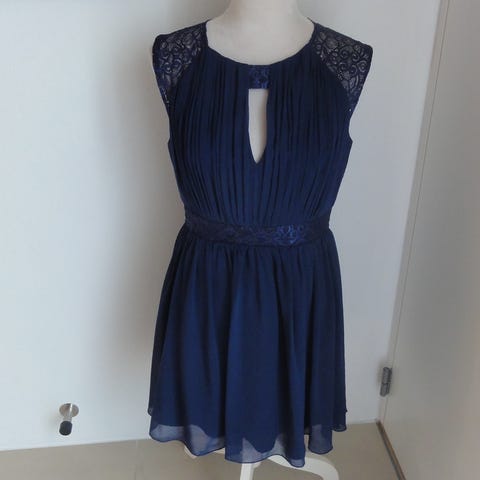 Utrolig flot tunika / festkjole med gennemsigtig tyl stof yderst. Er foret. Brugt ganske få gange og er meget velholdt. Ingen huller eller pletter.