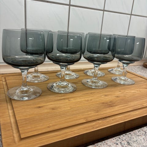 Glas, Drikke/ølglas, Atlantic Holmegaard, 8 stk Atlantic Holmegaard ølglas røg farvet kumme med klar stilk mundblæst indhold 32 cl