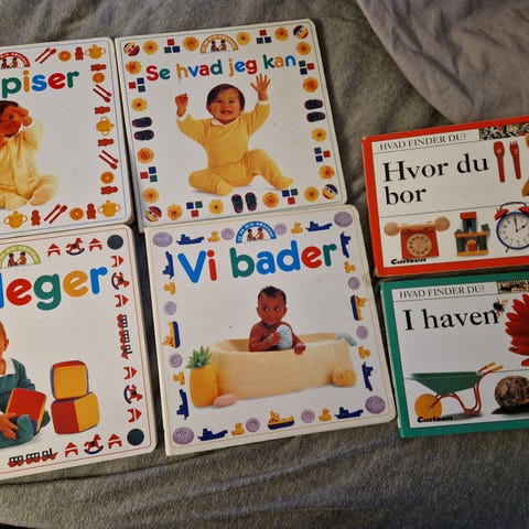 Bog, Sort/hvid sansningsbøger + 1 uro, 4 bøger til baby med forskellige former som i starten er meget simpel og så udvikler sig til mere krævende mønstre.