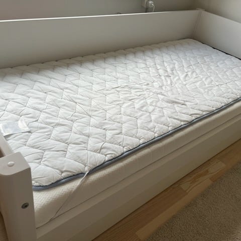 Købt i ILVA, sengen bliver solgt med dens originale sengehest og tilhørende madras (Dreamzone fra Jysk).