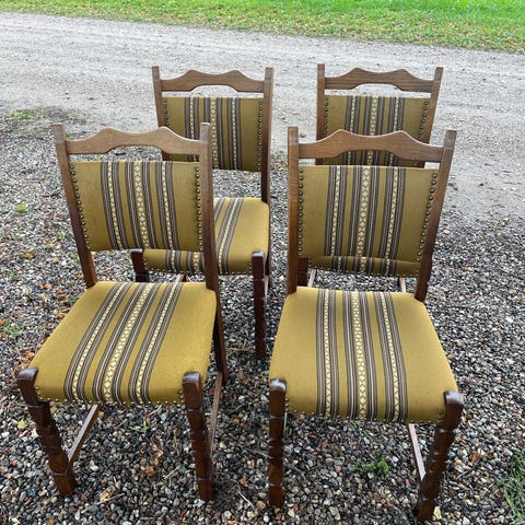 4 Spisebordsstol, Eg med velour, Antikbutik Kbh