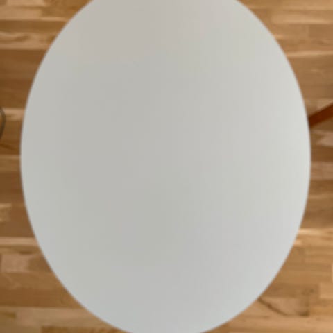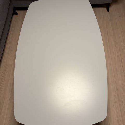Sofabord, David Design , laminat, b: 90 l: 110 h: 33, David design, stålrørsben, hvid laminatplade i oval form.