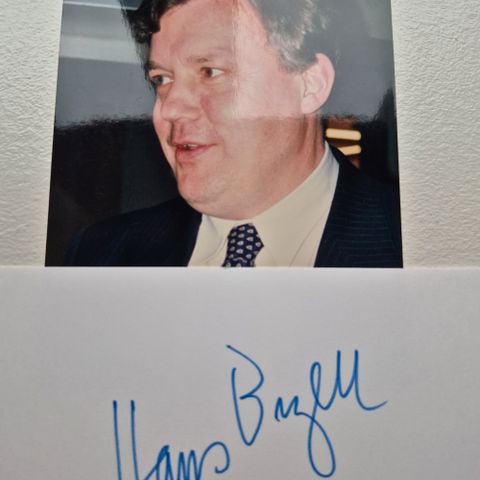 Super flot Hans Engell autograf. Billedet er trykt hos en professionel trykker, inden det blev sendt pr. brev til Hans Engell, til signering. Billedet er i en tyk og flot kvalitet (du skal være opmærksom på, det kan virke grynet og misfarvet, men det er det kun på billede, pga. komprimering ved upload til annoncen, det er super skarpt og flot i virkeligheden - der kan os være skygger eller spejling af lys, men det er der selvfølgelig heller ikke - det er kun under fotograferingen af autograferne, at det kan ses). Billedet måler 21x15 cm, og autografen er skrevet med en lyseblå tusch. Jeg har været professionel autografsamler i snart 17 år.