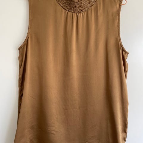 Bluse, Int, str. 38, Kobberfarvet, Polyester/ elastan, Ubrugt, Bluse uden ærmer - lukkes bagpå.