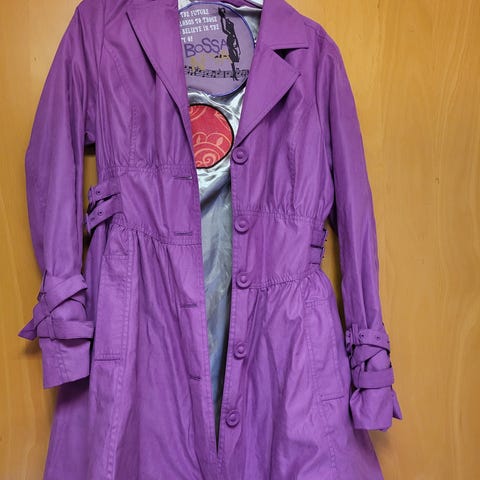 Har en fantastisk flot blå farve med mønster i stoffet,og foret er som altid meget farvestrålende. Det er de jo kendt for..