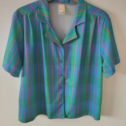 Skjortekjole, Finn Karelia, str. L, Polyester, God men brugt, Made in Finland.