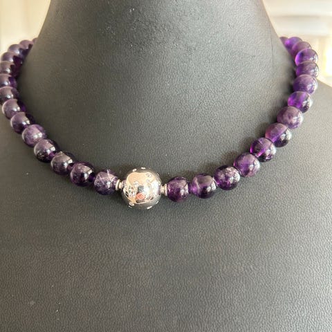 Halskæde, sølv, Scrouples, Så fin og enkel sølv halskæde, med ametyst i vedhæng fra scrouples. Den har en lille forlængerstykke på 4,5 cm og ellers er den 42 cm. Brugt 1 gang, da den er for kort til mig desværre. Ny pris var 595.