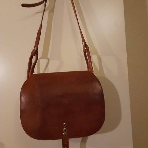 Skuldertaske, Jagttaske, Klassisk jægertaske / jagttaske / skuldertaske / crossbody i glat, brunt læder med rå kanter.