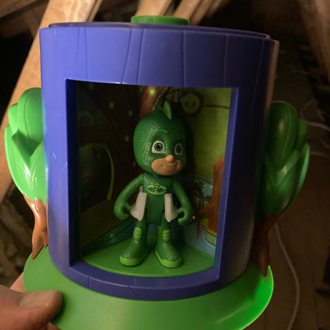 Pyjamasheltenes hovedkvarter, Stort Pyjamas helte hovedkvarter med elevator og faldlem ned til fangehul. Bærer præg af mange timers leg men er stadig funktionelt og klar til mange timers leg endnu.