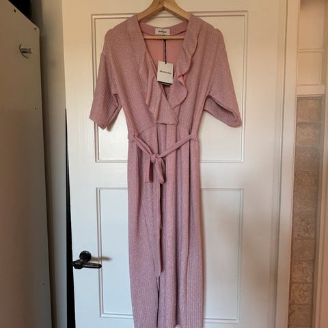 Maxikjole, Modström, str. M, Blå, Polyester , Ubrugt, Tætsiddende kjole str M, i farven: Love Love Blue i strækbar kvalitet med print og A-facon. BartoMD dress har lange ærmer og v-udskæring i halsen med rynkedetalje ved taljen. Brugt en gang.