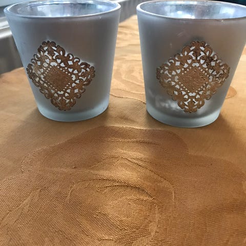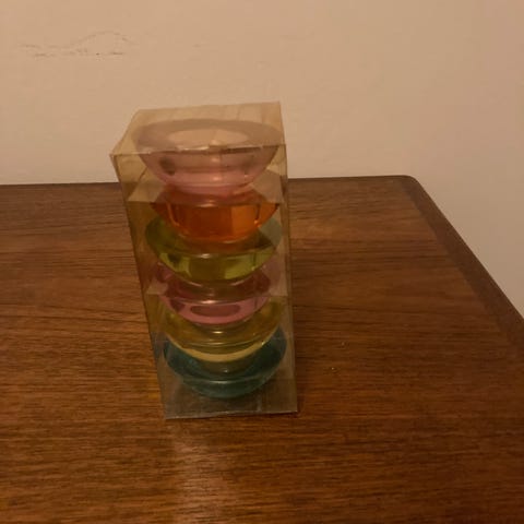 Fyrfadsstager, changerende blå nuancer. Højde: 8 cm. Meget smukke og stemningsfyldte med lys i. Giver en hyggelig og harmonisk glød.
