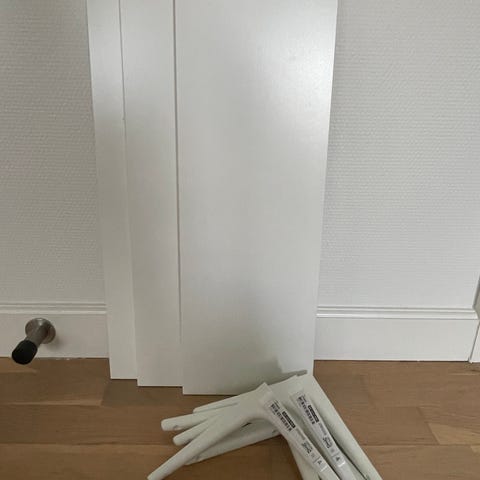 Hylder, Ikea, hylder 80x30, Ikea Berhshult/Ramshult, nypris 209,- pr. stk, samt 10 Tomhult hyldeknægte, nypris 10,- pr. stk. Står som nyt på nær skruehuller, se billede. Befinder sig i Guldborg men kan også afhentes i Greve. Kan leveres overalt på Sjælland lolland falster og møn mod forudbetaling af benzin. Fra røgfrit hjem.