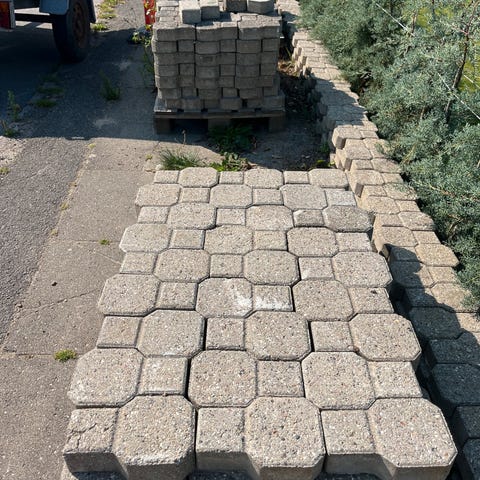 Ibf belægning sten, 11 x 11 x 7 fliser/belægning sten 204 stk a kr 2,00. Samlet pris kr 300,-