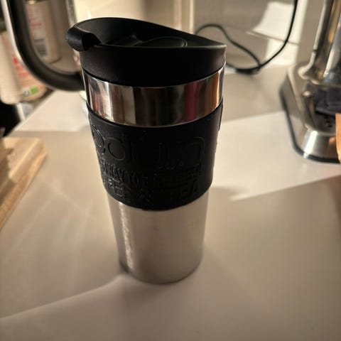Plastik, Termokop, Sort, Bodum, Hentes i Allerød. Sendes ikke.