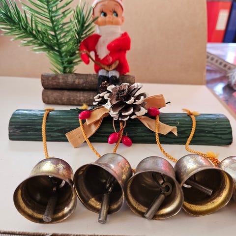 Julepynt, Oplukker, nisse/"Fredsjulen 1945", messing, 11,8 cm lang.