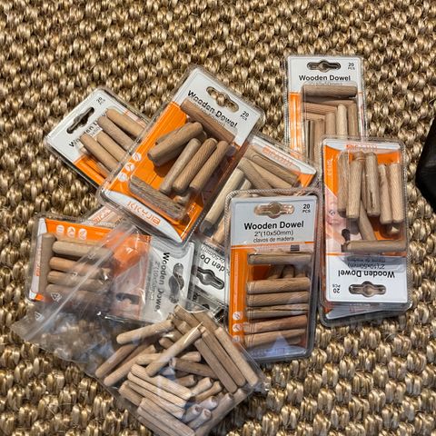 Dybel, Dybel 5 mm med skrue, 2 kr. for 4 stk dybel og 4 stk. skrue i en pakke. 5 pakker for 10 kr. Jeg har 100 pakker.