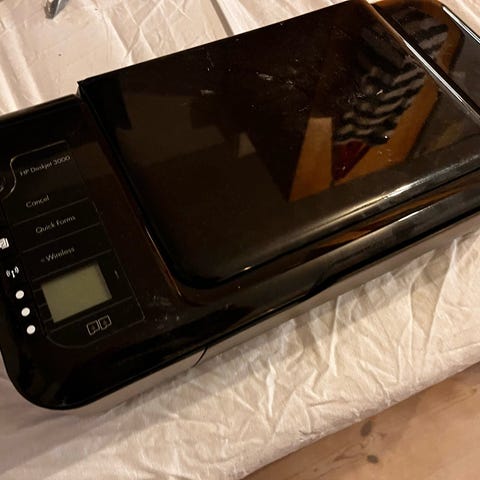Blækprinter, m. farve, Hp, Deskjet 3639, God, Anvendt minimalt lidt i hjemmet, hvorfor den skal videre til nogen, der vil bruge den. Skiftet patroner én gang, da de var tørret ud, da de ikke blev brugt nok.