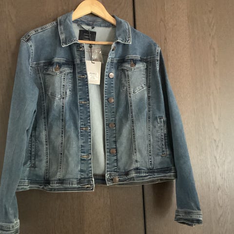 Cowboyjakke, str. 38, Sand, Blå/brun, Næsten som ny, Skøn cowboyjakke m/fine detaljer. Ikke brugt ret meget. Str. L men den er lille i størrelsen. Blød i materialet så den er behagelig at ha” på.