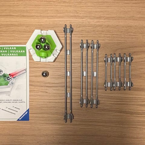 Meget flot kuglebane til lidt større børn. 2 startersets + 2 sjove ekstra sets.