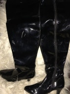 Støvler, str. 41, Pleaser usa , Sort lak , Lak , Ubrugt, Flotte lårstøvler med lynlås i siden og der er plads til lidt kraftige lår og læg vil tro hælen er ca 6 1/2 cm god pasform