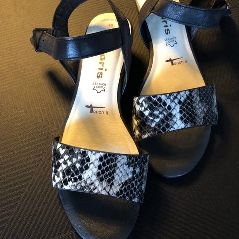 Sandaler, str. 36, Tamaris, Sort, Skind, Ubrugt, Helt nye sandaler i sort skind. De er lækre og bløde. Indersålen former sig efter foden. Nypris 500,-.