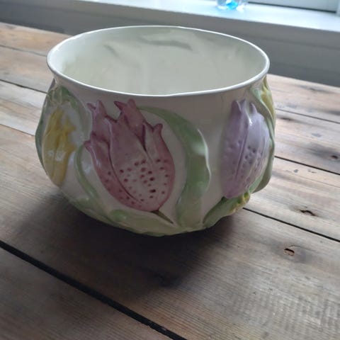 Porcelæn, Oval krukke Holkham pottery, Fin sjælden souvenir fra Windsor Castle, lavet af Holkham pottery Ltd. Oval krukke med et lille skår indvendigt. Ca 11 cm lang. Kr 75