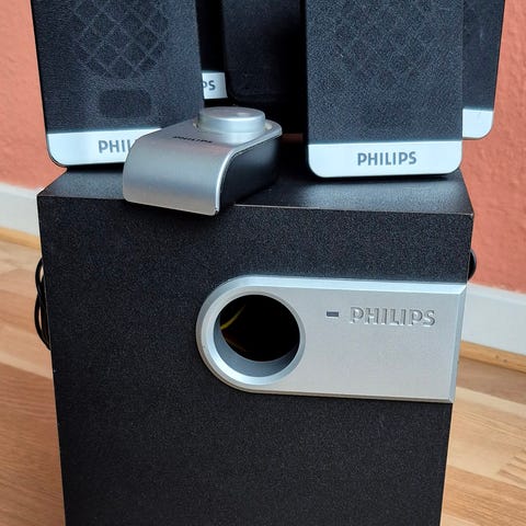 Har dette Philips højtalersæt jeg ikke længere bruger. Det fungere fint. Sendes helst ikke, men afregning ved døren er det jeg foretrækker !.