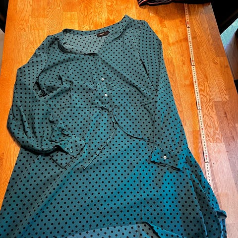 Skjorte i creme hvid, viscose. Flot skjorte med fine detaljer i form af knapper og lille bånd, se foto. Slidser i siderne. Flot stof med struktur. Let og luftig. Spørg gerne, hvis du vil høre mere om skjorten. Kun vasket i parfumefrit vaskepulver. Røg- og dyrefrit hjem. Sendes gerne.