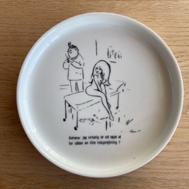Platte, Anni Lippert platte med tysk tekst "is est eigentlich erforderlich, dass is mich für eine so winzige spritze vollständig entkleiden muss?"