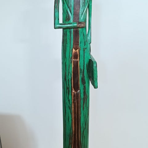Træfigur, Kunsthåndværk, motiv: Paddehat, Flot stor træfigur med fint rillemønster. Bemalet med metallisk maling. Ca 80 cm høj.