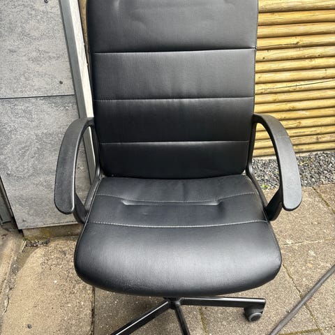 Kontorstol, Løffler eg 1-5 L Ergonomisk balance stol træfod med gummi - ruskinds sæde 30 cm dia. - siddehøjde 52 - 76 cm - nypris 2.200,- en flot og funktionel stol. Få brugsspor.