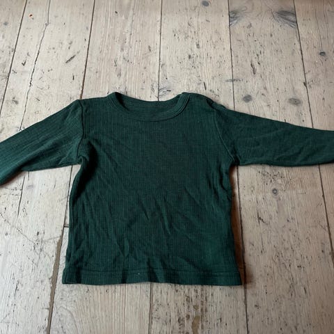 Bluse, Uldbluse, Minimalisma, str. 98, Grøn uldbluse str. 4-5 men lille. Brugt og med 2 huller. Fin stand ellers. 25kr.