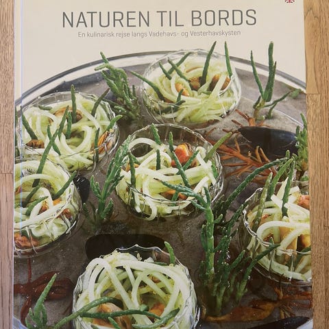 Naturen til bords, Bent Christensen og Claes Bech-Poulsen, emne: mad og vin, Hardback i stor format. Har desværre en mindre skjold øverst på ryggen og det ene hjørne se billederne. Siderne inden i bogen er fine.