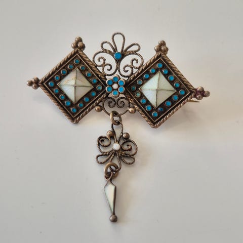 Broche, sølv, S J