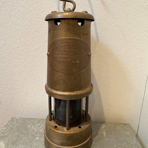 E. Thomas & Williams , Kobber / messing, Gammel engelsk minelampe med fladbrænder til lampeolie med serienummer: 34390