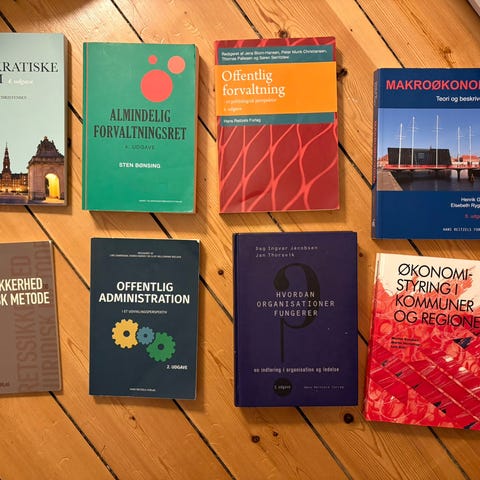 Sidste billede viser de andre bøger jeg sælger fra Proffesionsbachelor i Offentlig administration. PBOA