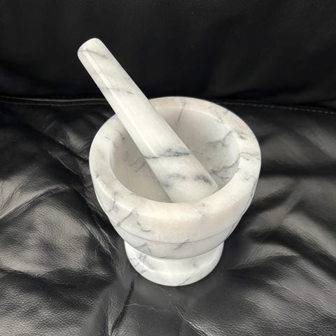 Andet, Marmor bræt/ fad med træ håndtag, RETRO, 35 cm i dia. og 19 cm høj ved håndtag. Håndtag kan skrues af. Dupper under plade. Anvendelig til mange ting. Kan evnt. afhentes i Aarhus.