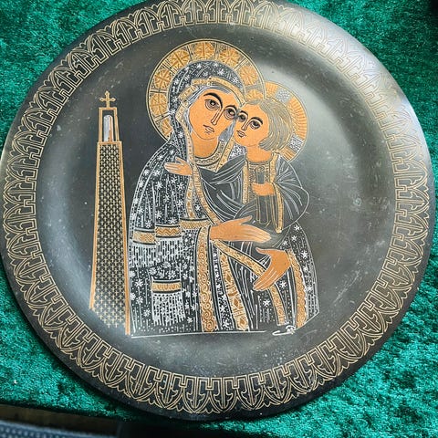Antik kobber vægplatte / fad