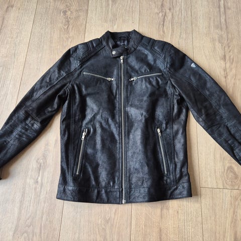 Læderjakke, str. L, Ukendt, Sort, Læder, Som ny. Lækker jakke, tynd og blød læder. Brugt 1 gang. Som ny. Str. Xxl, men lille i størrelse. Passer str. L. Brystmål ca. 120 cm. Længde ca. 70 cm. Jakken kan bruges på begge sider.